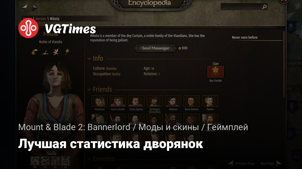 Если вы ответили да, то этот мод для вас! Этот мод читается в файле NPC lords.xml и добавляет больше / лучшие навыки каждой дворянке в зависимости от их возраста и личности. Также включен грубый скрипт Python, который я использовал для создания нового npc xml, который использует этот мод, который можно настроить в соответствии с вашими предпочтениями.