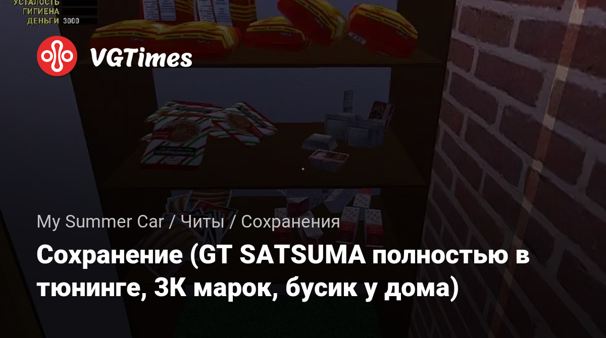 Сохранение (GT SATSUMA полностью в тюнинге, 3К марок, бусик у дома)