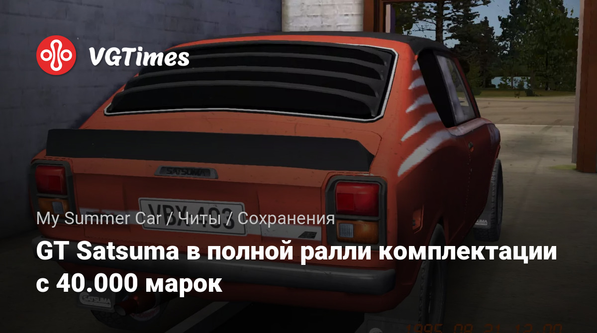В данном сохранении ГГ имеет 40.000 марок, и автомобиль Satsuma в полной Rally комплектации, в нашей комнате стоит компьютер, получены ключи от фургона дяди и Gifu. На столе стоит ящик пива, а в кладовке стоят еще 4 ящика пива, куча сахара и пустых бутылок, ещё там стоит ведро в котором нужно варить местную брагу, в ведре она уже готова.