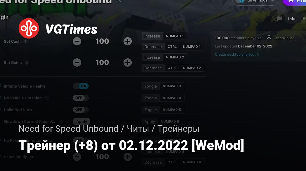 Трейнер (+8) от 02.12.2022 [WeMod]