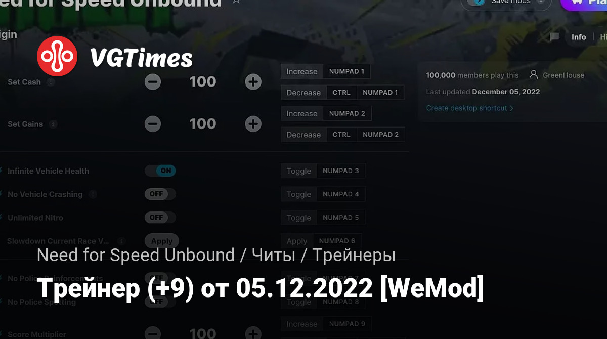• Need for Speed Unbound — Трейнер (+9) от 05.12.2022 [WeMod]