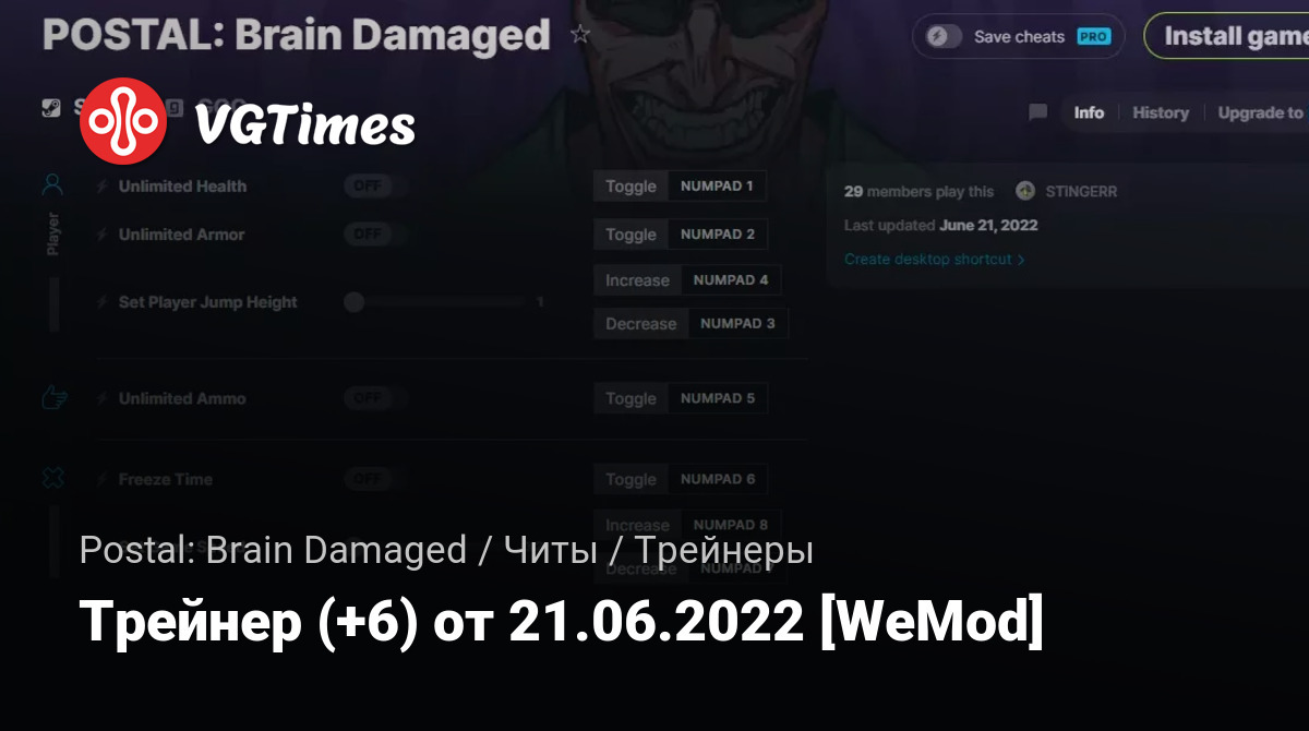 Для использования трейнера необходима установка системы WeMod (требуется онлайн подключение).