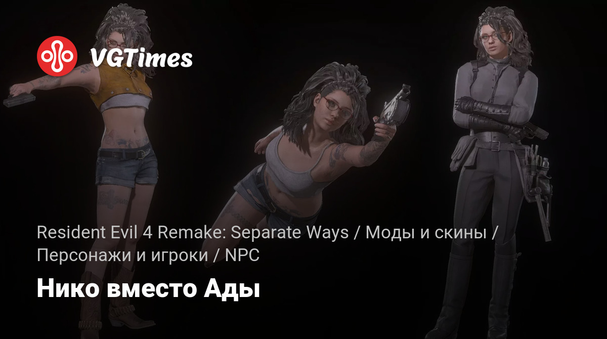 Нико вместо Ады из игры Devil May Cry 5. Заменяет стандартную одежду, платье и под прикрытием.