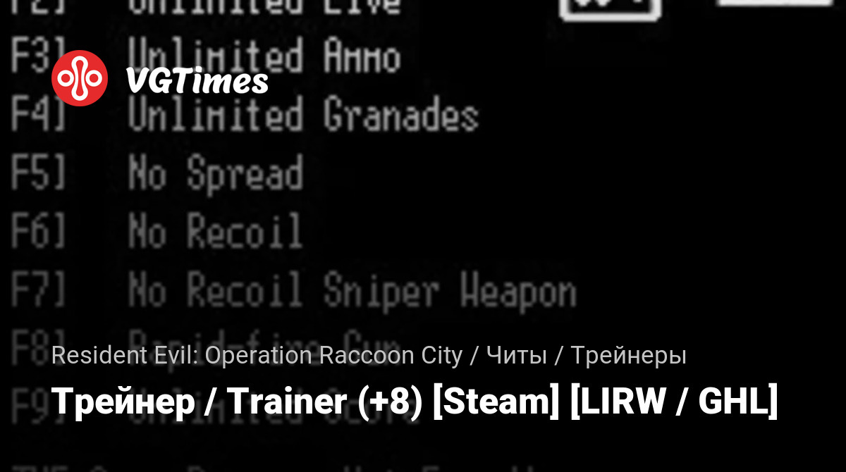 Jogos Resident Evil: Operation Raccoon City Arquivos Treinadores Трейнер / Trainer (+8) [Steam] [LIRW / GHL]