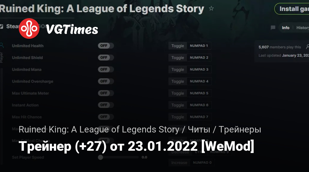 Для использования трейнера необходима установка системы WeMod (требуется онлайн подключение).