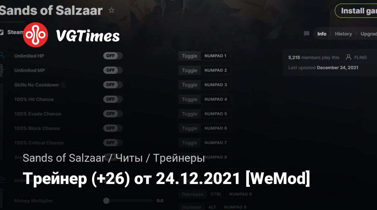 Для использования трейнера необходима установка системы WeMod (требуется онлайн подключение).