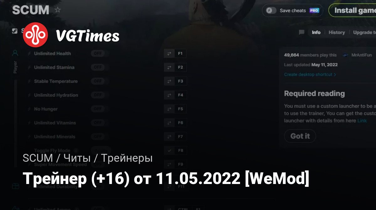 Для использования трейнера необходима установка системы WeMod (требуется онлайн подключение).