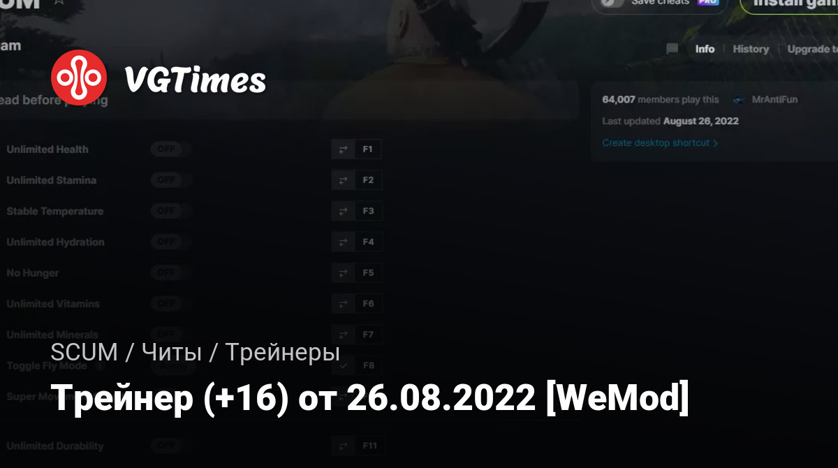 • SCUM — Трейнер (+16) от 26.08.2022 [WeMod]