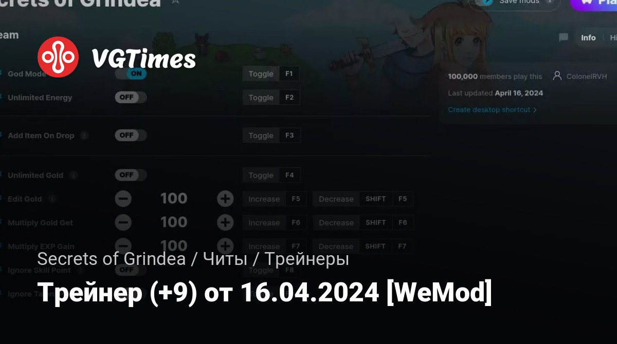 Трейнер (+9) от 16.04.2024 [WeMod]