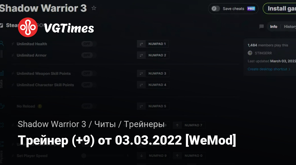Трейнер (+9) от 03.03.2022 [WeMod]