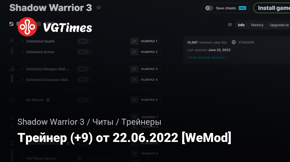 Для использования трейнера необходима установка системы WeMod (требуется онлайн подключение).