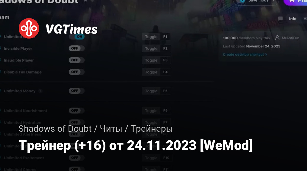 • Shadows of Doubt — Трейнер (+16) от 24.11.2023 [WeMod]