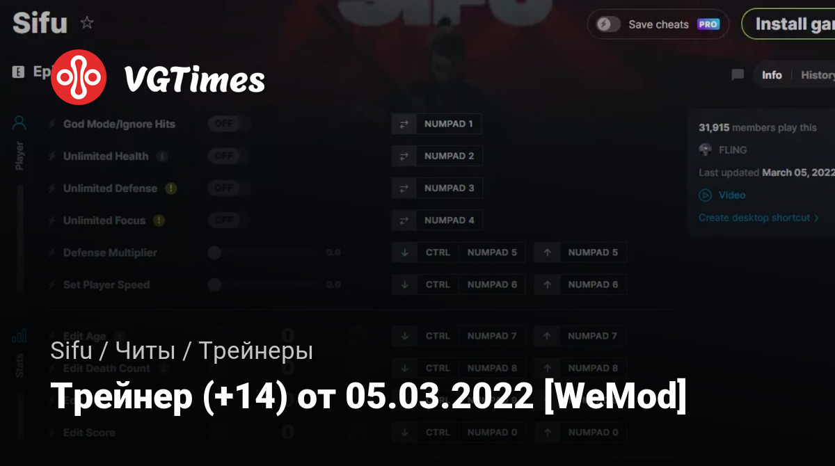 Для использования трейнера необходима установка системы WeMod (требуется онлайн подключение).