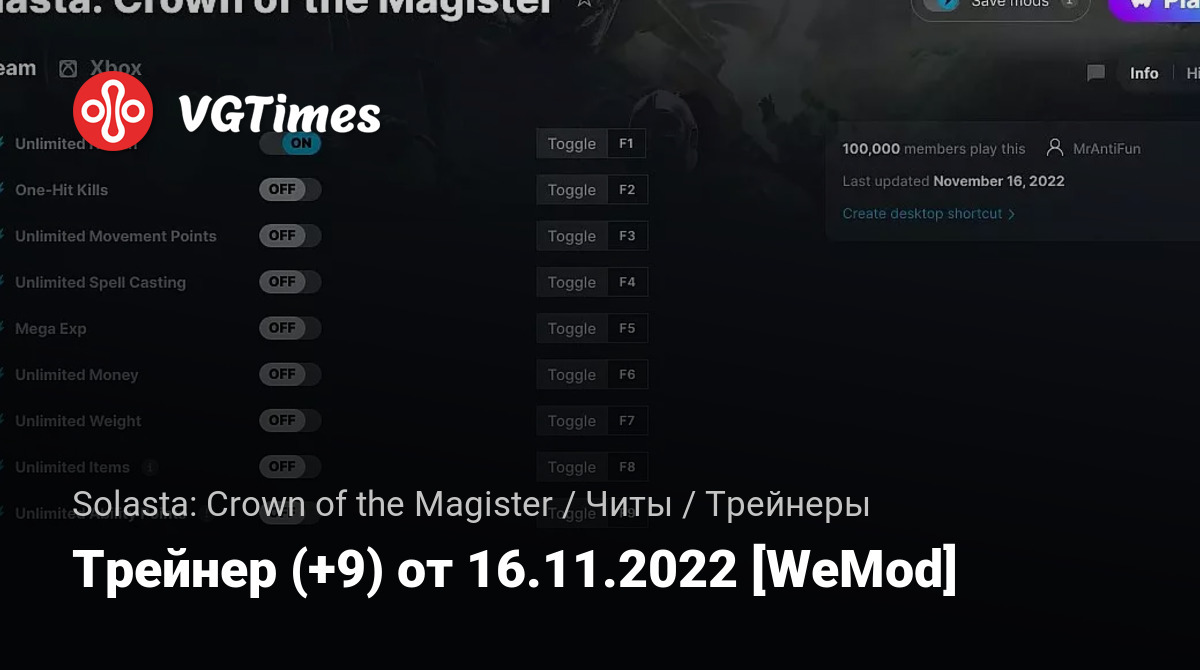 Для использования трейнера необходима установка системы WeMod (требуется онлайн подключение).