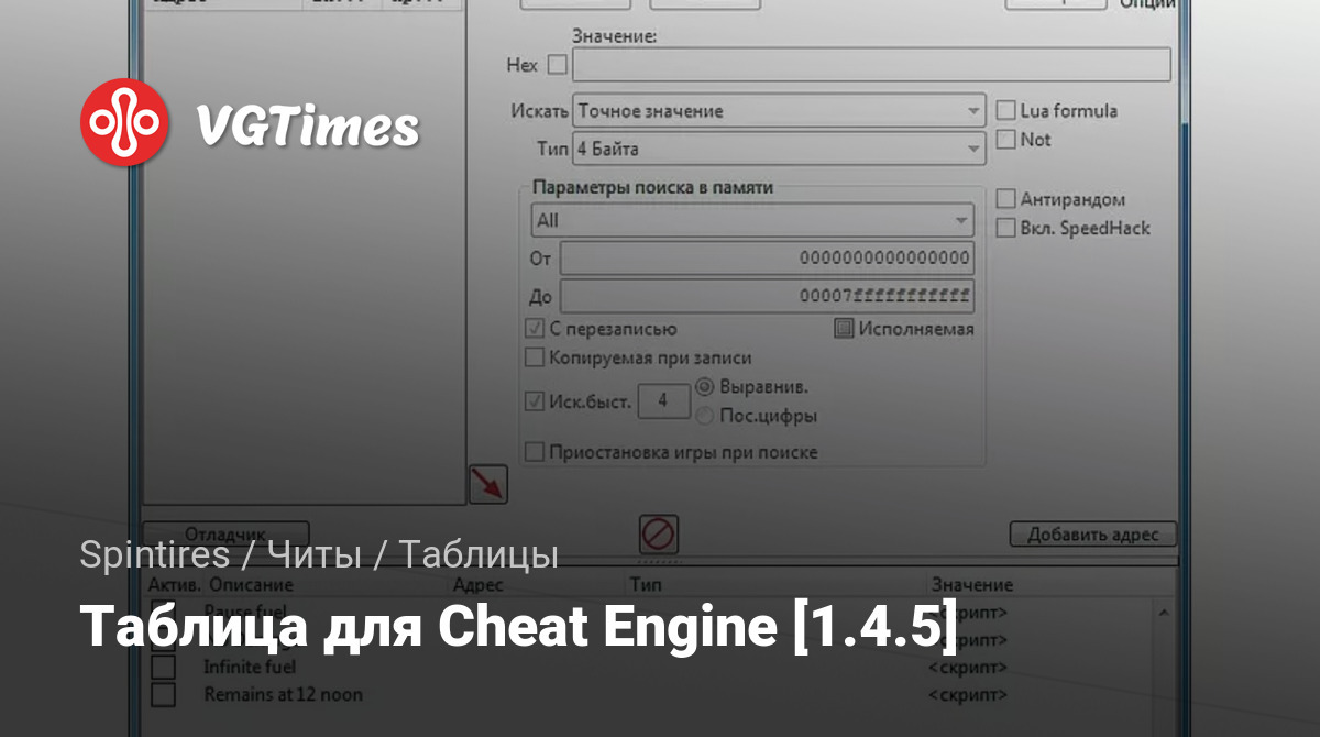 1. Запустить Cheat Engine, "Load" и выбрать таблицу