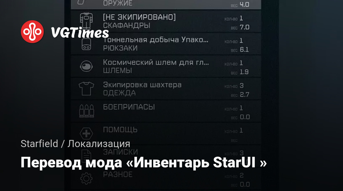 Перевод мода «Инвентарь StarUI »