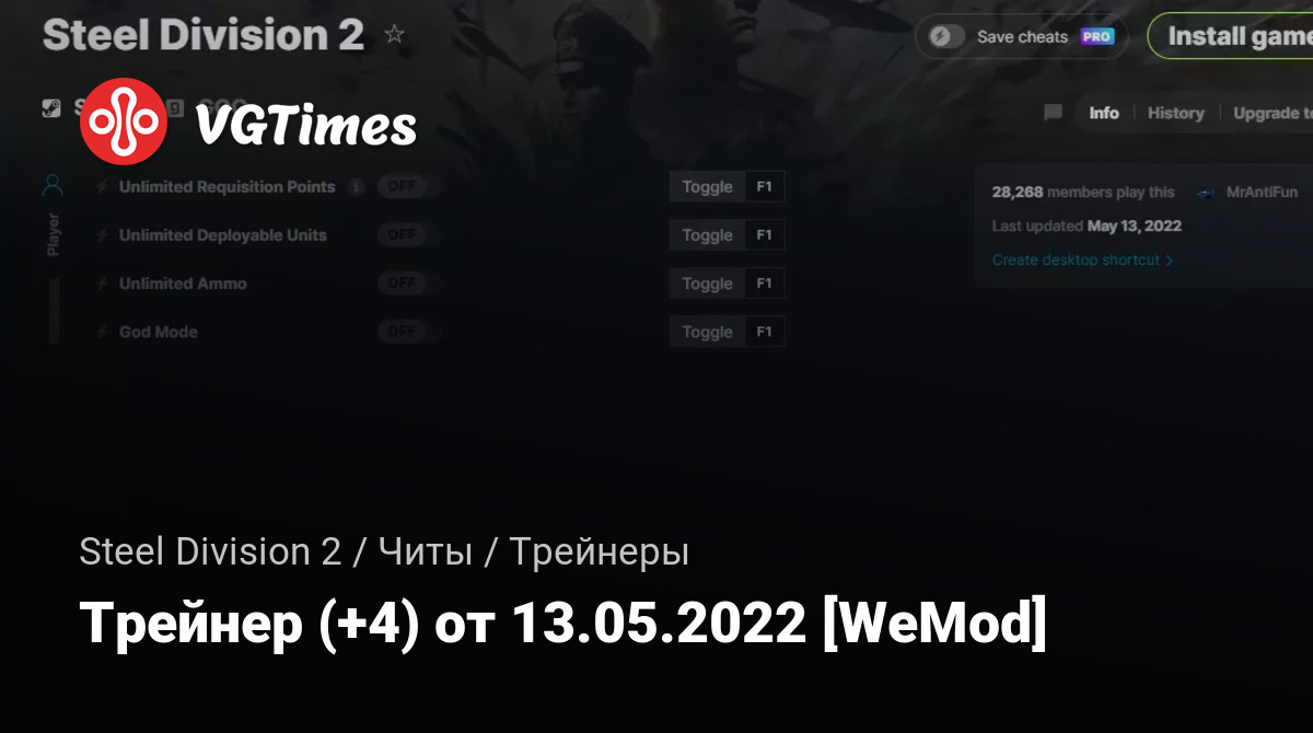 Для использования трейнера необходима установка системы WeMod (требуется онлайн подключение).