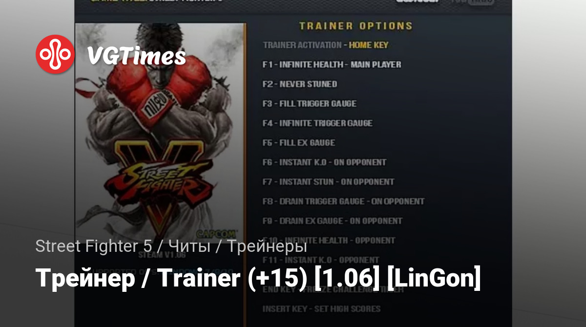 Jogos Street Fighter 5 Arquivos Treinadores Трейнер / Trainer (+15) [1.06] [LinGon]