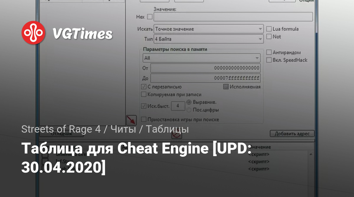 Таблица для Cheat Engine [UPD: 30.04.2020]