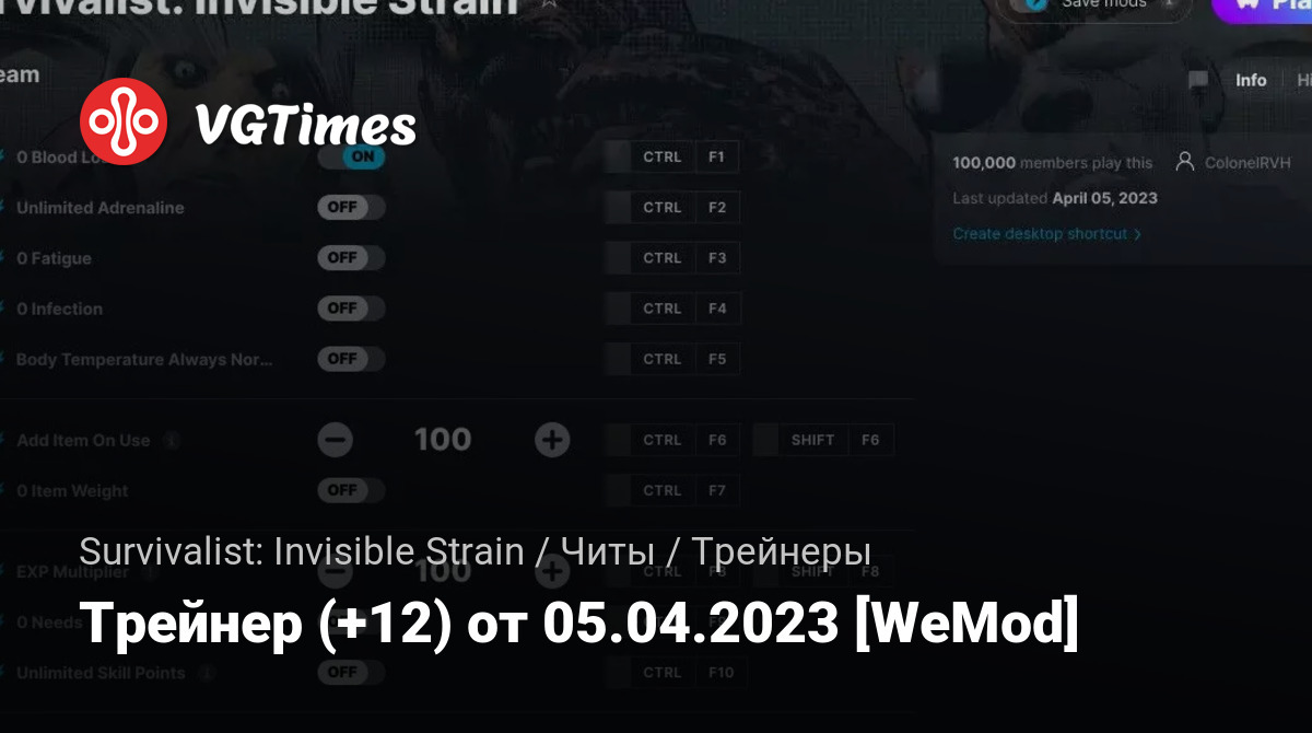 Для использования трейнера необходима установка системы WeMod (требуется онлайн подключение).
