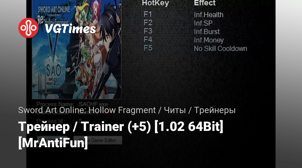 Jogos Sword Art Online: Hollow Fragment Arquivos Treinadores Трейнер / Trainer (+5) [1.02 64Bit] [MrAntiFun]
