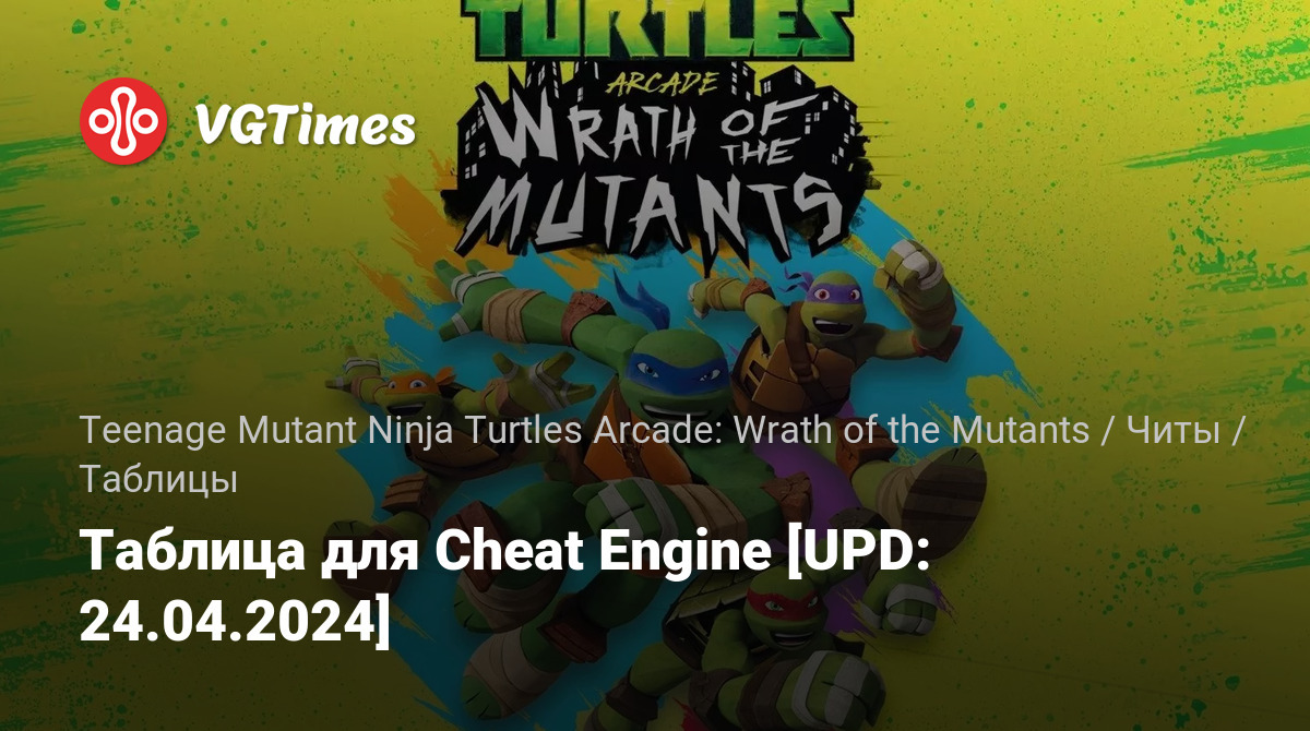 Jogos Teenage Mutant Ninja Turtles Arcade: Wrath of the Mutants Arquivos Tabelas Таблица для Cheat Engine [UPD: 24.04.2024]