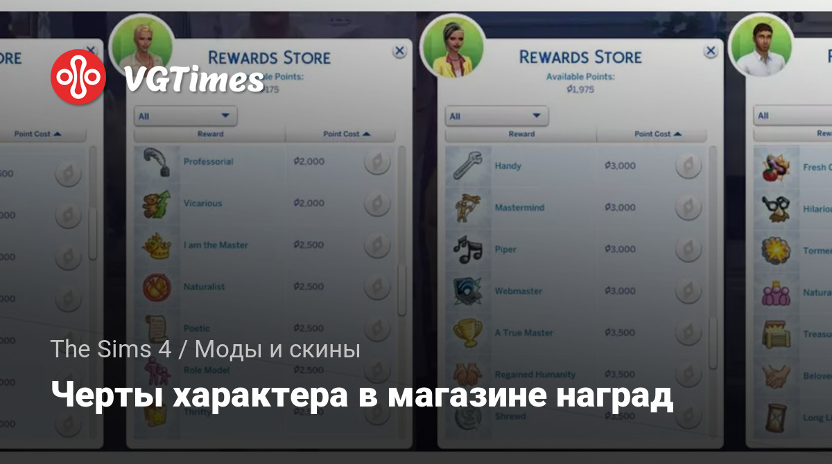 Этот мод расширяет список черт, доступных в магазине наград, добавляя в него все черты за стремления, имеющиеся в игре.