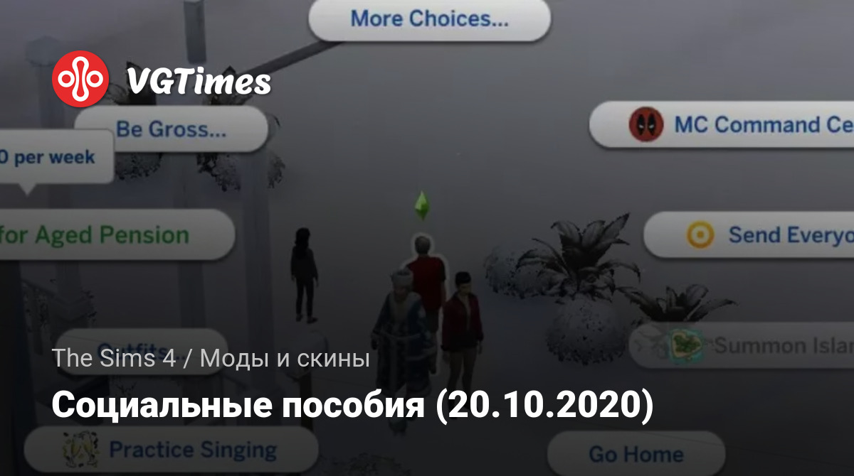 20.10.2020: С этим обновлением меню социальных пособий перенесено в телефон персонажей: теперь, чтобы начать получать выплаты, нужно сначала перейти в меню телефона, в раздел "Работа" (доступно персонажам любого возраста, кроме малышей) и подать заявление на получение пособия. В том случае, если вы хотите оформить социальное пособие на малыша, следует выбрать действие при клике на самого персонажа. Кроме того, были исправлены некоторые баги и улучшена стабильность работы мода.