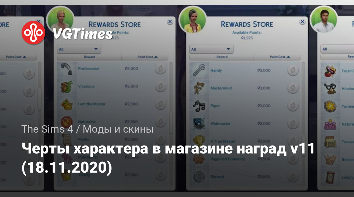 Этот мод расширяет список черт, доступных в магазине наград, добавляя в него все черты за стремления, имеющиеся в игре.