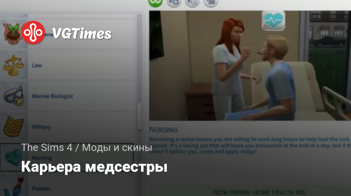 - Чтобы стать медсестрой, вашему Симу нужна степень по биологии. Карьера медсестры не будет отображаться в списке, если у вашего сима нет диплома!