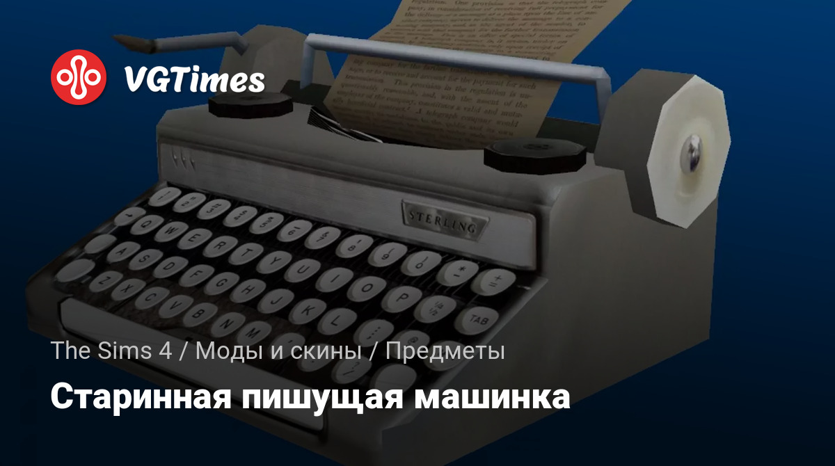Корпус и пьедестал сняты с антикварной пишущей машинки и сделаны доступными для покупки. Автономный. Включает в себя настраиваемую текстуру с высоким разрешением, а также три исходных. Исходная текстура была 256x256, новая — 2048x2048. Это предмет декора, а не прибор или компьютер.