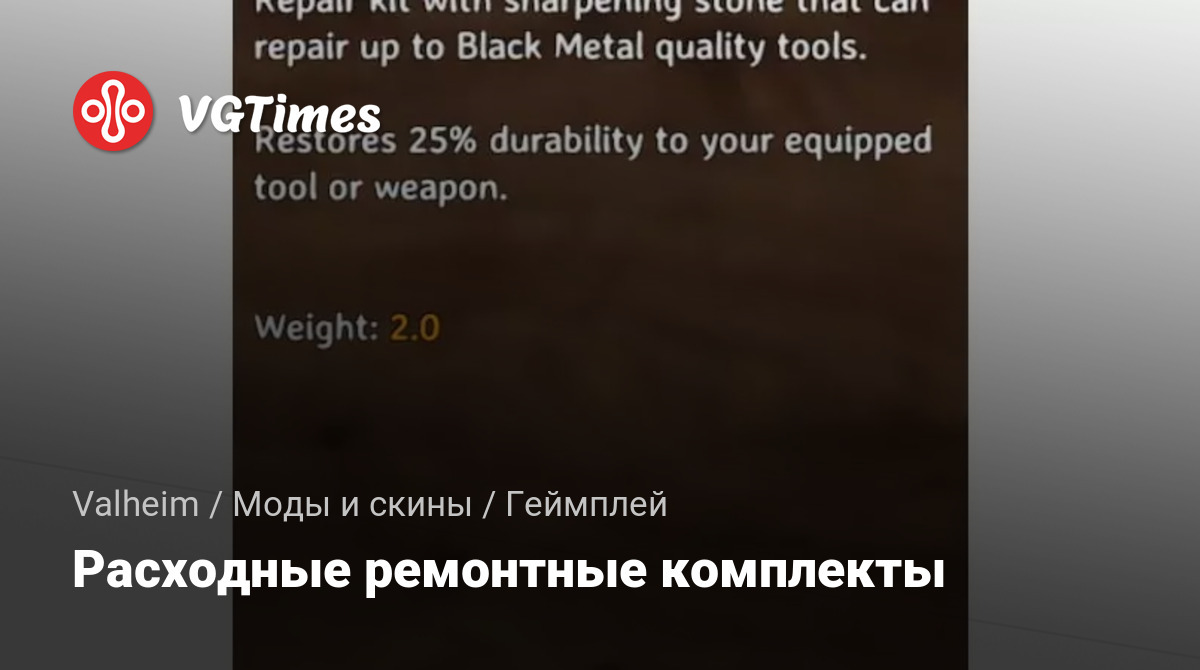 Этот мод добавляет расходные ремонтные комплекты, которые ремонтируют ваше экипированное оружие или инструмент. Он также добавляет «Продвинутый ремонтный комплект», который ремонтирует полностью сломанные инструменты и оружие на небольшую сумму, позволяя вам переоборудовать свой предмет, чтобы использовать на нем стандартный ремонтный комплект.