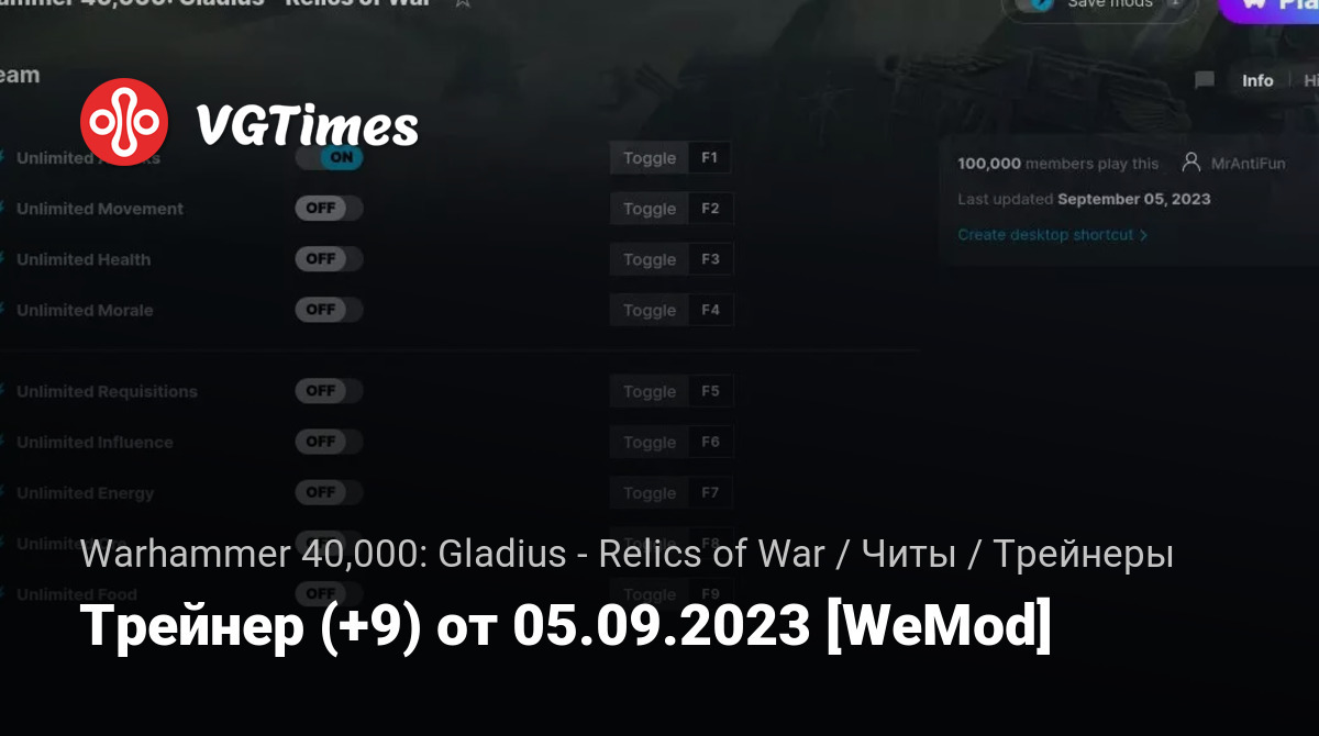 Трейнер (+9) от 05.09.2023 [WeMod]