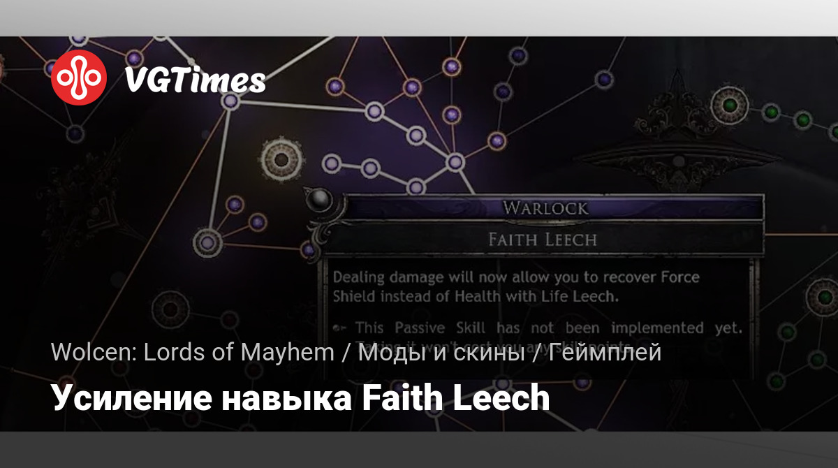 Простой мод для Wolcen: Lords of Mayhem, который исправляет ситуацию шитом leeching в пасивной ветке умений Warlock.
