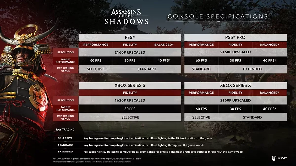 Following the release of Assassin’s Creed: Shadows’ system requirements, details on its console performance have surfaced. The standard PS5 version will offer three graphical modes, while PS5 Pro users will benefit from enhanced ray tracing.