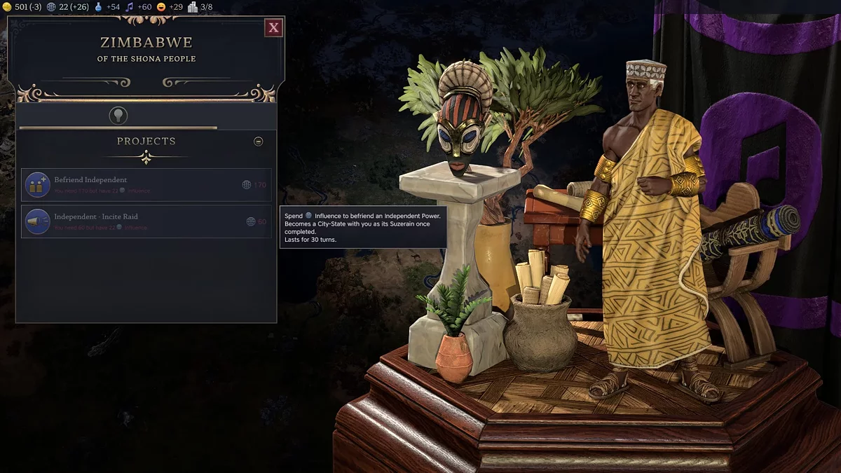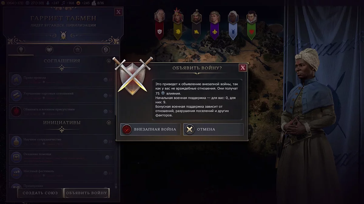 Vamos começar explicando como a influência funciona e sua funcionalidade. Com este recurso, você pode fazer acordos lucrativos com vizinhos, aceitar ou rejeitar suas ofertas, impor sanções e desenvolver cidades-estado.