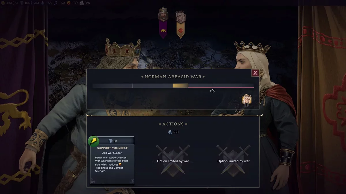A influência também pode ser obtida se um oponente decidir declarar uma guerra inesperada sem motivo. No entanto, isso acontece raramente.