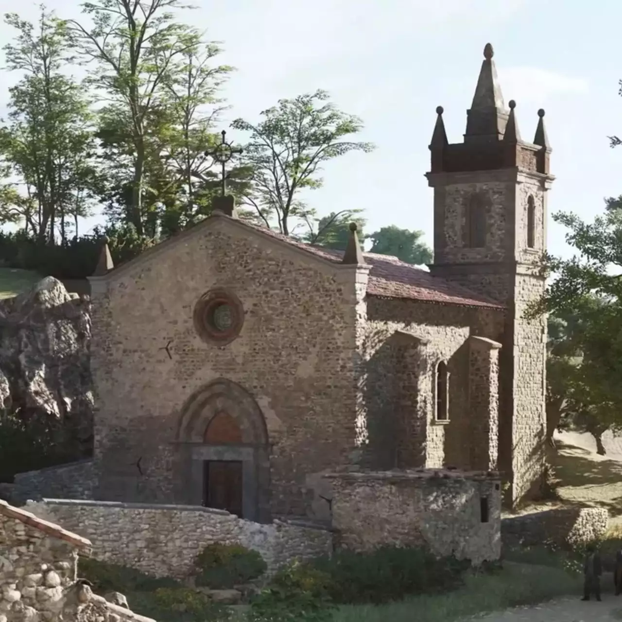 Após a cena, leve Isabella até a igreja para o batismo do filho de Luca. Quando você chegar à praça em frente à igreja, Isabella vai querer conversar.