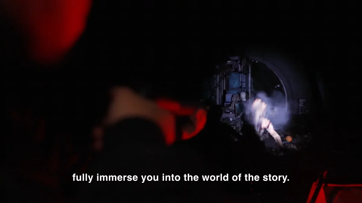 Dentro do cubo, o jogador segura uma arma réplica usada para atirar nos inimigos. Tudo isso se assemelha a uma atração altamente avançada.