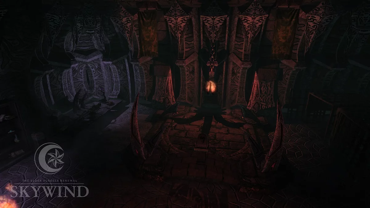 No jogo original, o templo pode ser encontrado a nordeste do acampamento Urshilaku. O Daedra pode dar ao personagem principal uma missão para encontrar o Elmo de Oreyn Bearclaw, que foi roubado por um astuto Dunmer. Os desenvolvedores do Skywind mantiveram a arquitetura reconhecível dos vaults Daédricos, mas substituíram a estátua do Príncipe por uma mais moderna: