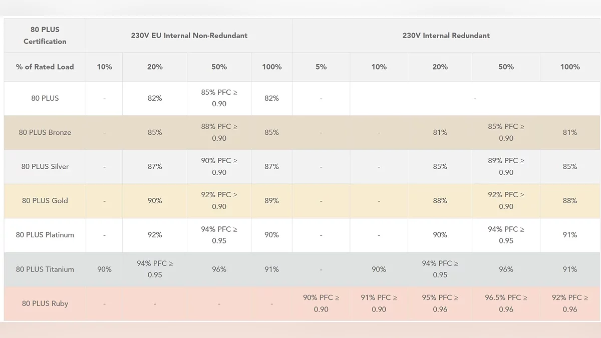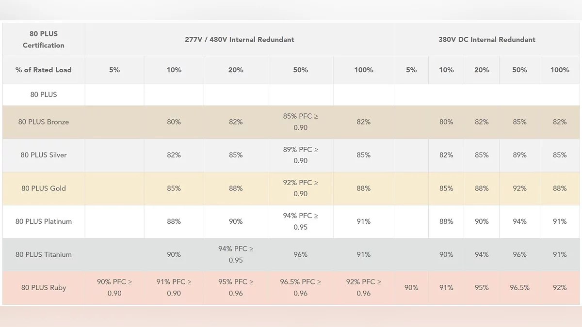 CLEAResult, uma consultoria especializada em certificação de fontes de alimentação, anunciou a introdução do padrão de eficiência 80 PLUS Ruby. Marcando a primeira adição ao programa 80 PLUS em mais de uma década, Ruby imediatamente reivindica a posição mais alta na hierarquia de certificação existente.