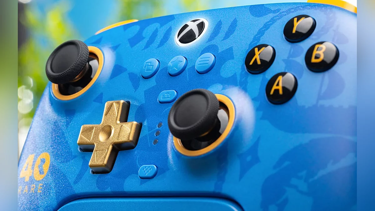 Intitulado 8BitDo Ultimate 3-mode Controller for Xbox — Edição de 40 Anos da Rare, o controle tem uma aparência distinta em comparação com o modelo padrão. Ele apresenta uma combinação de cores azul e dourado com uma marcação comemorativa de aniversário no chassi.