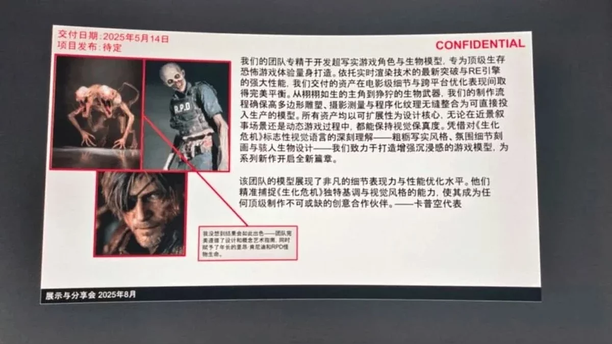 Um usuário do Reddit também tentou traduzir o texto japonês no slide. Segundo ele, cita um representante da Capcom dizendo que a equipe está trabalhando em “modelos de personagens realistas reconhecidos em toda a indústria.” O material pode ter sido destinado a parceiros que produzem figuras colecionáveis.