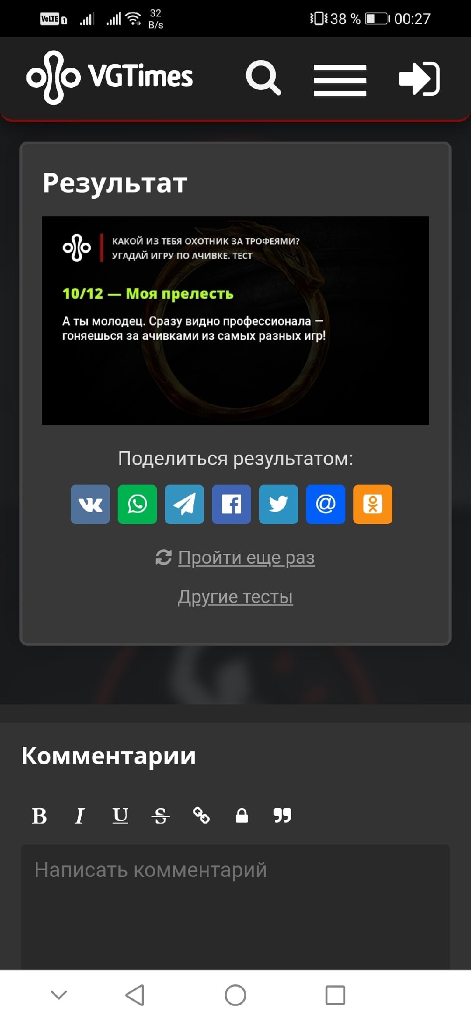Абсолютно легчайший тест. Там даже текст читать не нужно, чтоб понять по стилистике, к какой игре относится ачивка. Но тем не менее на тлоу 2 и блэк месе я завалился.